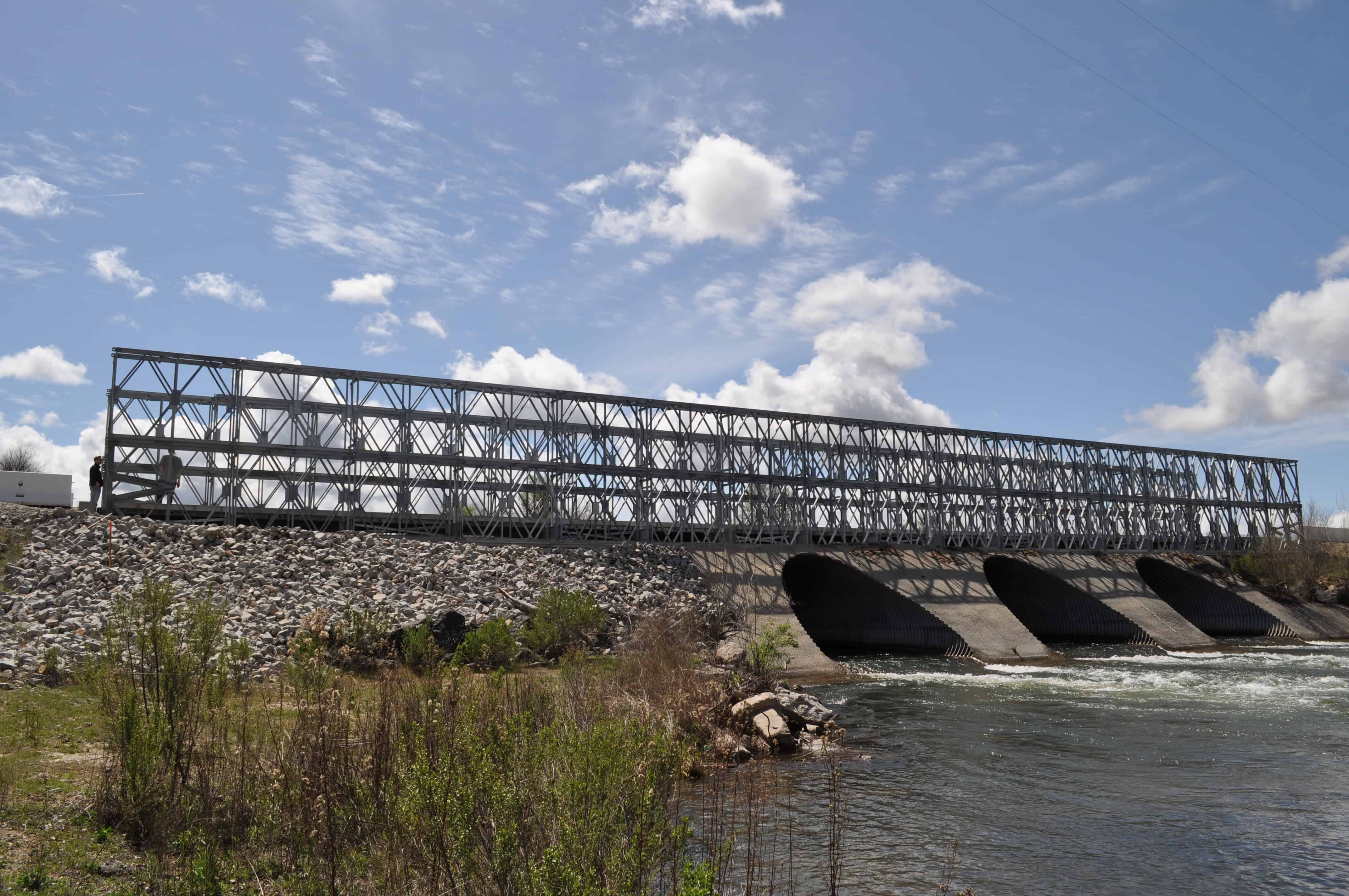 The bridge is actually termed a “temporary” bridge due to how easy it is to deconstruct and move to another location, but the quality and durability of the construction ensures it will be a solution that lasts for decades at Camp Roberts. Having it pre-constructed and engineered for handling heavy vehicle traffic provided significant savings to the Camp. With the crossing design handled, the next order of business was to resolve the flooding of the road during high flow seasons.